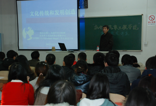 2012年12月,杨庆民博士为我校师生做题为《文化传统和发明创造》的学术报告