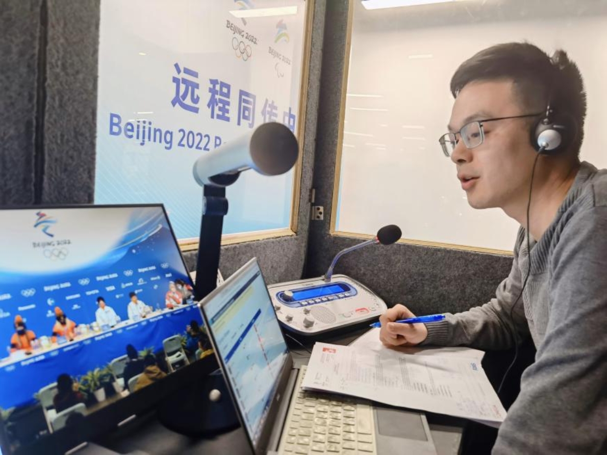 冬奥会作为重要国际赛事,对于语言服务有很高的要求。为了满足北京、延庆、张家口三个赛区赛后新闻发布会高质量口译服务的需求,北京冬奥组委语言服务业务领域在主媒体中心设置了远程同传中心。冬奥期间共有26名外籍小语种口译员以及16名中英译员在此工作,为国际奥委会、北京冬奥组委、国家(地区)奥委会的各类会议提供口译服务。我作为人文学院英语教师经学校推荐,在冬奥筹备期间及赛时借调至主媒体中心担任中英口译员。