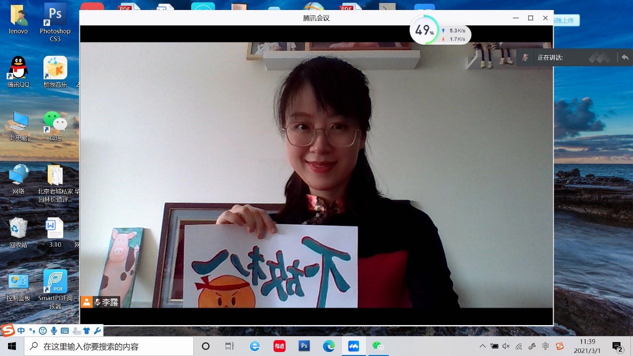 图说:李露在线上课堂鼓励大家抗疫不放松
