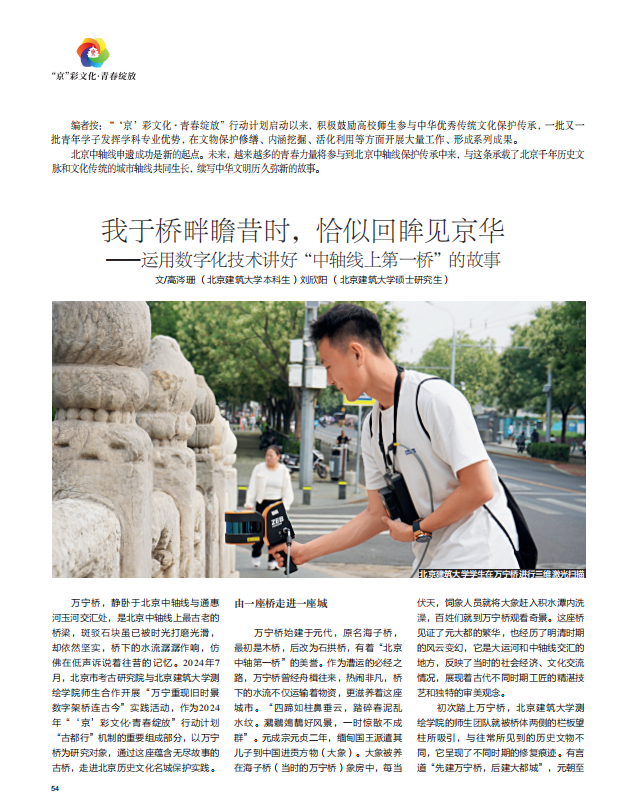 年“‘京’彩文化·青春绽放”行动计划“古都行”机制的重要组成部分,以万宁桥为研究对象,通过这座蕴含无尽故事的古桥,走进北京历史文化名城保护实践。