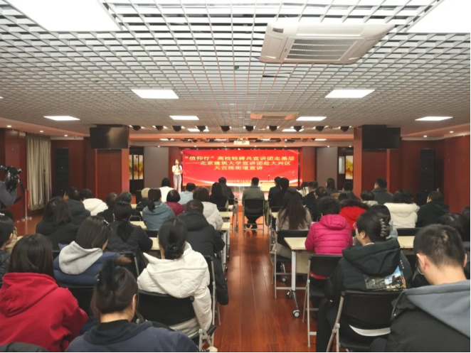 12月3日,大兴区“信仰行”高校轻骑兵宣讲团走基层活动在天宫院街道举办。宣讲报告会上,北京建筑大学马克思主义学院宣讲团围绕《打造数字经济新优势》《禾下乘凉青年助振兴》《以人民为中心的发展之路--从绿皮到高铁》主题作宣讲授课。宣讲活动同步通过“北京大兴”app、“北京大兴”微博等平台进行线上宣传,在线受众近5万人次。