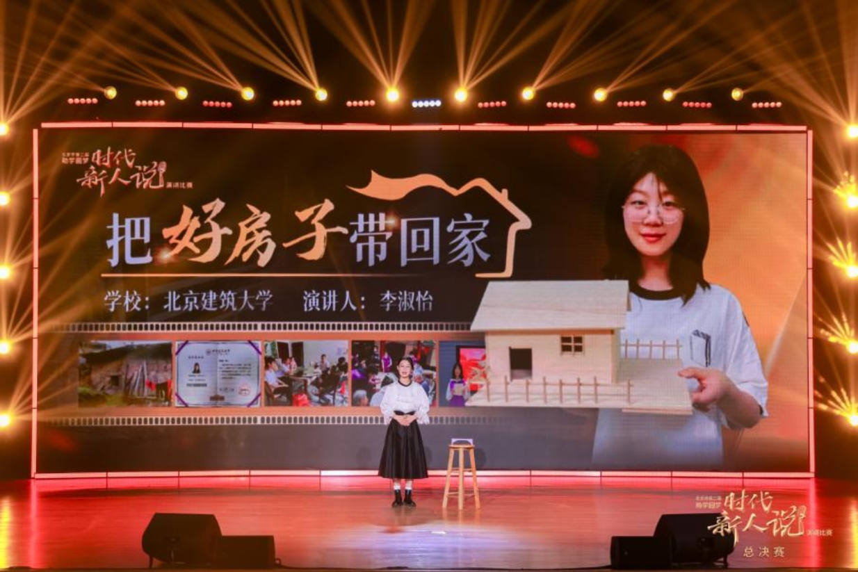 李淑怡以《把好房子带回家》为题,讲述了自己从秦岭小镇到首都北京,从追光者到发光者的励志成长故事。从家乡儿时漏雨的土坯房种下建“好房子”的梦,到享受国家资助政策顺利开启了在北建大建筑领域专业学习的旅程,一路她躬行实践、砥砺前行。演讲中,她提到:“我们谈的‘好房子’,不是豪宅别墅,而是万家灯火;不是冰冷的kpi,而是‘老有所依、幼有所乐’的中国故事”。她表示,立志继续追光逐梦,以所学答时代之问、担青年之责,为祖国建设更多装满温暖与希望的“好房子”。