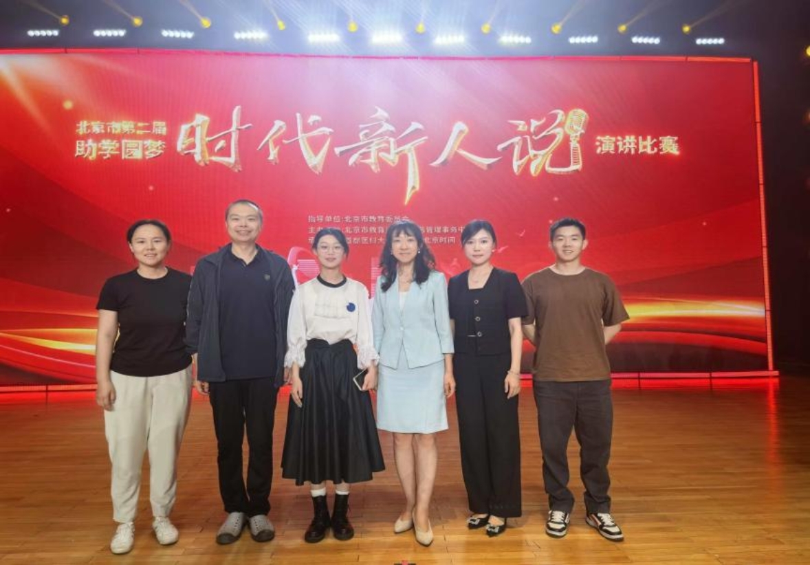 为深入贯彻落实《教育强国建设规划纲要(2024—2035年)》,完善学生资助宣传教育机制,强化资助育人作用发挥,北京市教育资产与财务管理事务中心于近期举办了2025年北京市“助学圆梦·时代新人说”演讲比赛。通过前期紧张激烈的初赛和复赛比拼,6月13日,我校未来院2023级李淑怡同学在总决赛现场,凭借出色表现,从京内53所高校的186名参赛者中脱颖而出,成功入选“北京市学生资助宣讲团”。
