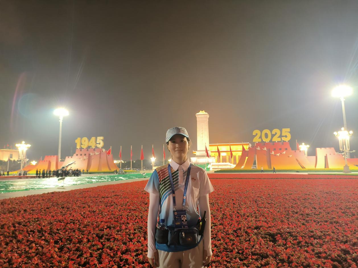 在校内,我负责志愿者整体协调、岗前培训、思想引领等工作,从流程设计到思想动员,努力为同学们筑牢服务基础、明确纪律底线。虽因任务要求,服务结束后需立即隐蔽,同学们只能在地下通道军车通行时的阵阵轰鸣声中感受庄严时刻,但每个人无怨无悔,以行动致敬历史。此次任务不仅是一次志愿服务,更是一堂深刻的“沉浸式”思政课。我们用当代青年的担当,传承不屈的民族精神;以默默无闻的坚守,告慰峥嵘岁月中的先烈。身为带队教师,我由衷为他们骄傲!我们虽隐于人海,却心向光辉——这份使命,必将长存于心。