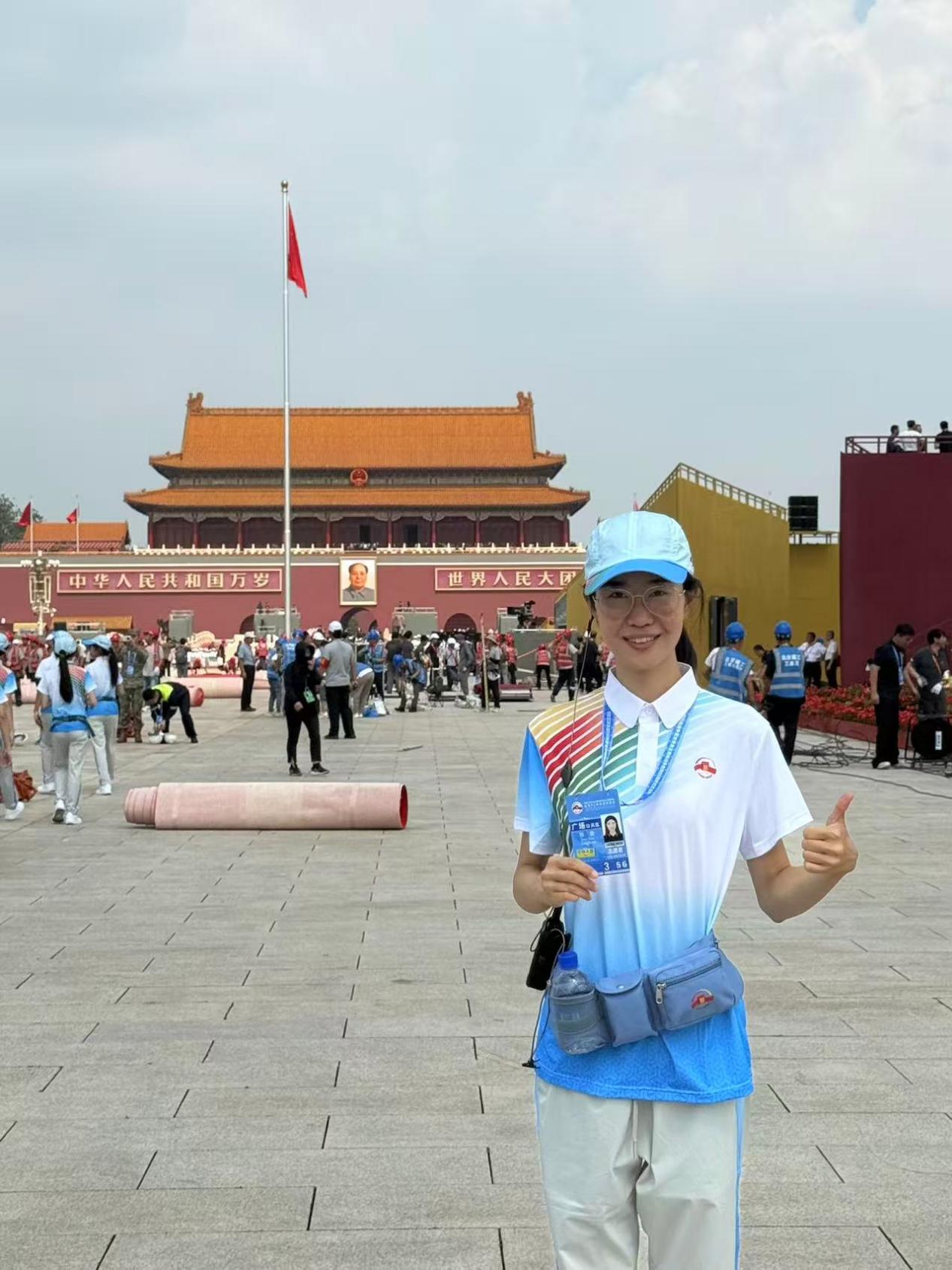 作为广场合唱团一员,我同时承担学校合唱方阵的形体训练指导、集结疏散调度、文件管理、物资采购、场地保障等工作。作为一名首都高校教师,我曾经历过多次大型活动历练,此次纪念活动是表达对党和国家情感及贡献的重要时刻,我以更严格的标准要求自己,确保各项工作万无一失。广场上,我努力用实际行动诠释首都高校教师的担当,助力学生们在活动中收获成长,为纪念活动的圆满成功贡献自己的全部力量!