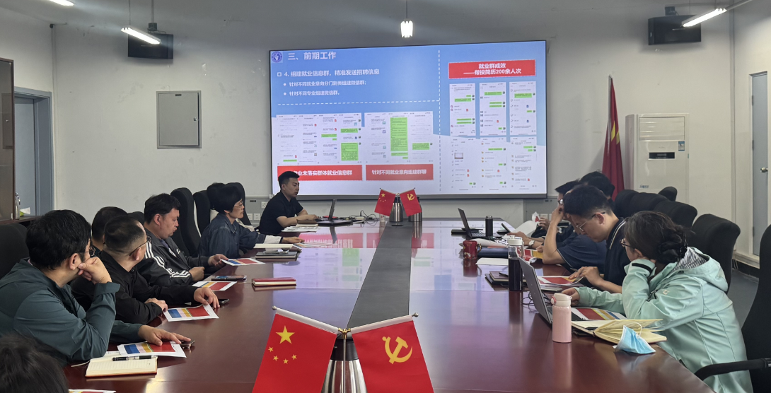 会上,辅导员赵佳兴对2025届毕业生就业工作进行阶段性汇报,详细梳理当前毕业生落实情况,分析当前面临的实际困难及下一步工作计划。