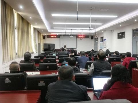 首先,彭磊书记向全院教职工传达学校干部大会主要内容,简要介绍新任学校党委书记姜泽廷同志的情况。
