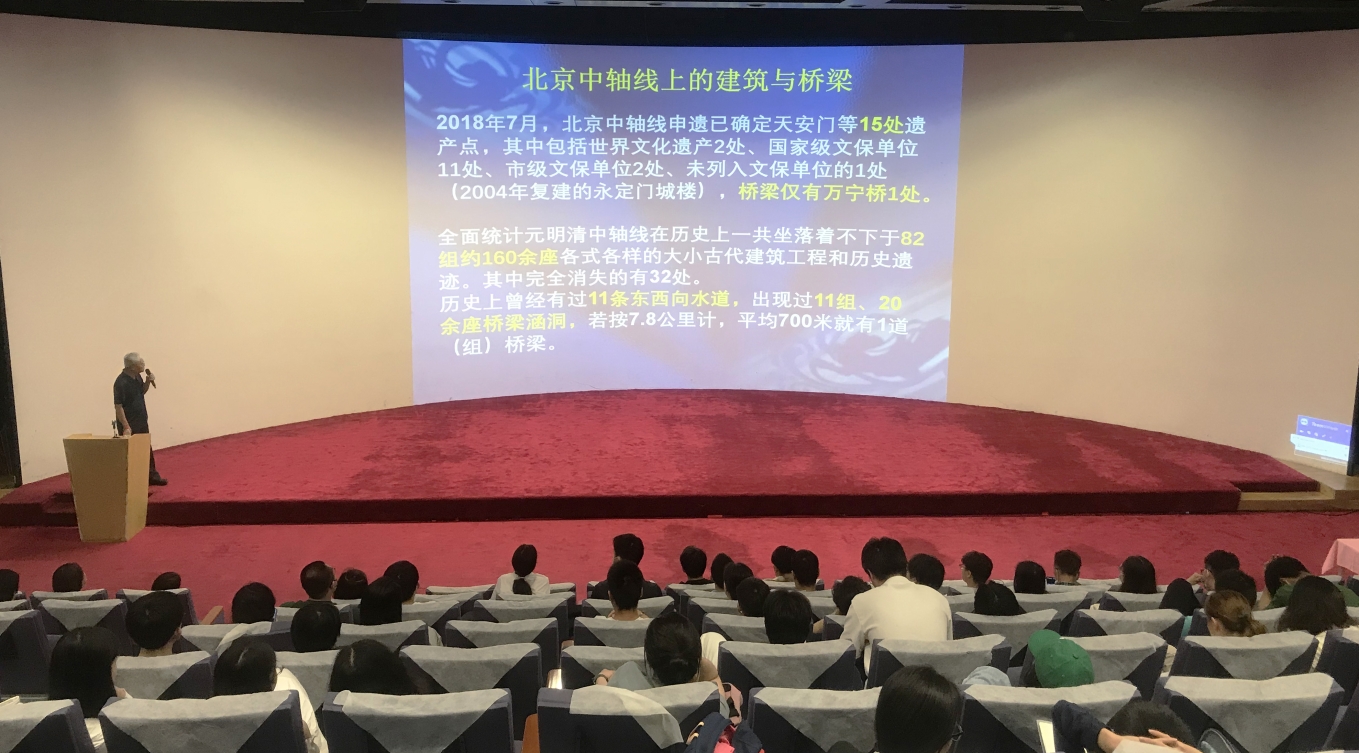 5月30日,北京建筑大学文化发展研究院特聘研究员王锐英应邀在北京市规划展览馆举办“北京中轴线上的桥梁”公益讲座。讲座吸引了50余名建大学生和社会观众的热情参与。