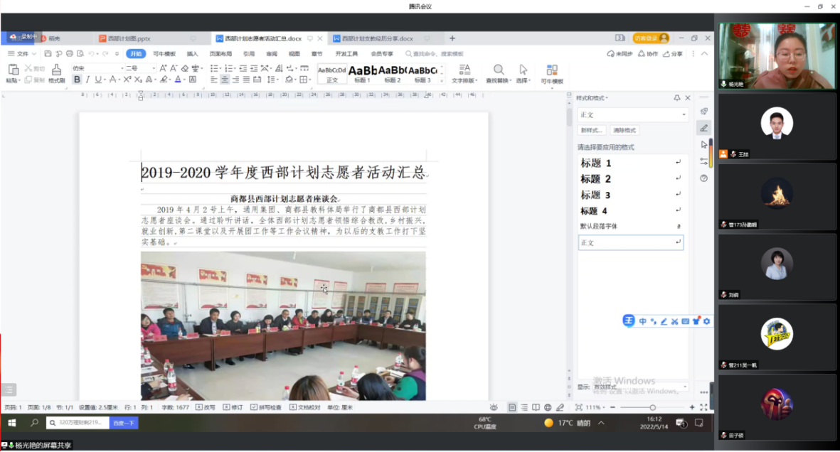 为深入学习贯彻习近平总书记在庆祝中国共青团成立100周年大会重要讲话精神,号召建大学子积极响应志愿服务西部计划,5月14日,我校“青春心向党 志愿西部行”2022年大学生志愿服务西部计划宣讲会在线上举行。西部计划北京项目办负责人李莉、校团委书记卫巍、我校正在西部地区服务的3位志愿者代表、就业指导中心王国亭、各学院分团委书记及50余名团员青年代表参加活动。宣讲会由校团委副书记刘倩主持。
