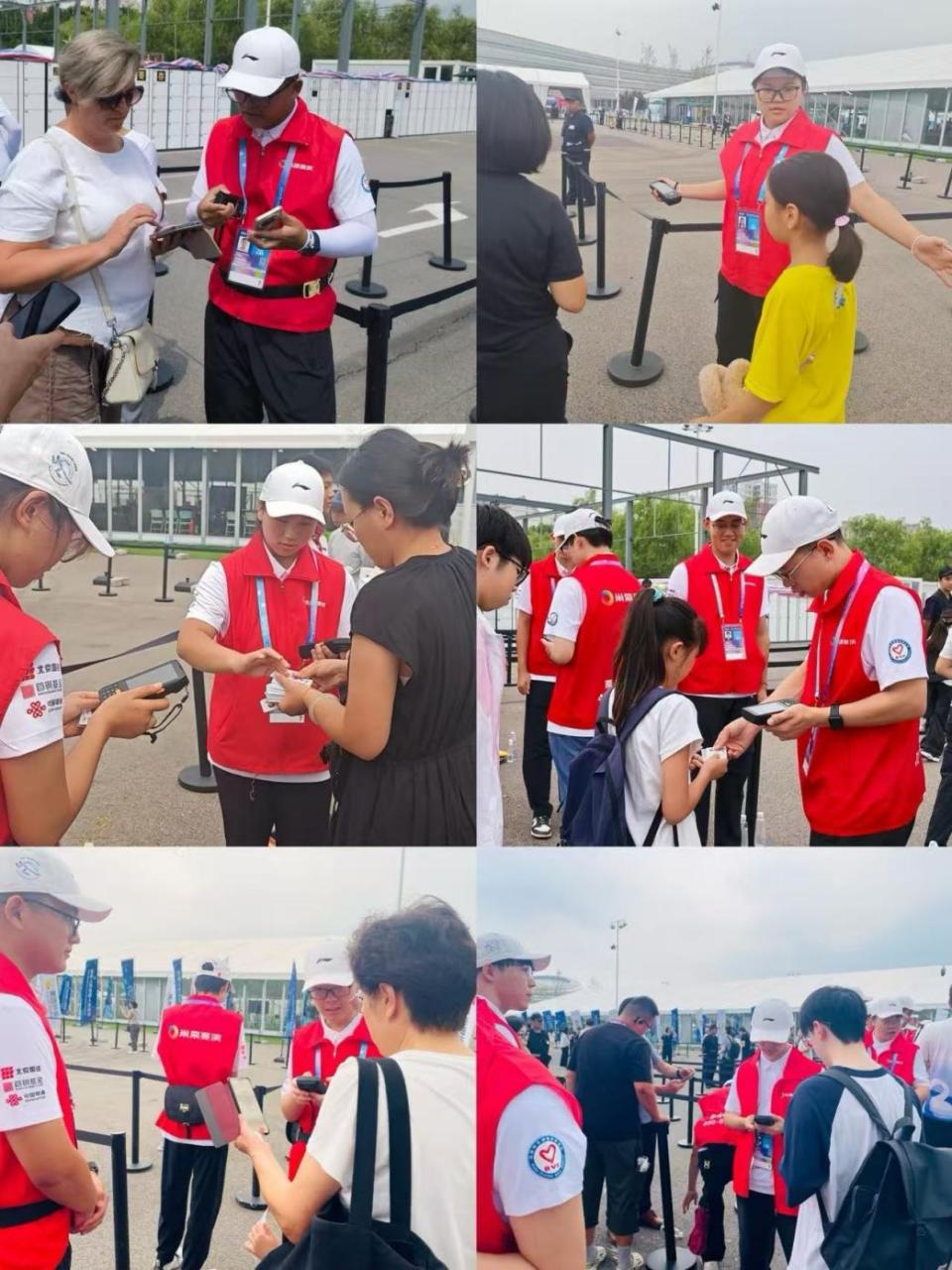 在世界人形机器人运动会的繁忙现场,北京建筑大学的志愿者们身着统一制服,手持检票设备,坚守在票务查验岗位。他们仔细核对票券、耐心指引入口,为后续的安检环节起到了有效的缓冲作用。面对各类票务疑问,志愿者们始终以热情耐心的态度向观众解释说明。他们不仅高效完成了赛事观众的入场检票工作,确保每一位观众顺利入场,更以细致入微的服务维护了检票区域的井然秩序。这些志愿者用汗水与微笑,为这场盛会筑起了一道温暖而坚实的防线,让每一位到场观众都能感受到宾至如归的温馨。