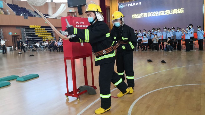 北京市大兴区消防救援支队指挥长刘康明在点评中讲到,此次消防演练充分展现了北京建筑大学微型消防站保安队员们在应急处突过程中的专业化水平,希望进一步提升消防安全意识,把各项消防安全举措落到实处,共同维护校园安全稳定。