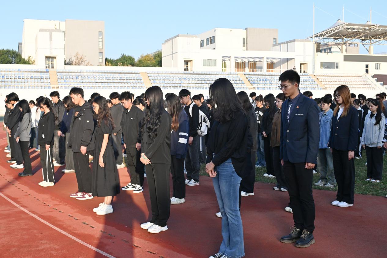 7时10分,仪式在肃穆的氛围中开始。全体师生整齐列队,脱帽肃立默哀,深切缅怀为民族独立、人民解放和国家富强英勇献身的革命先烈。
