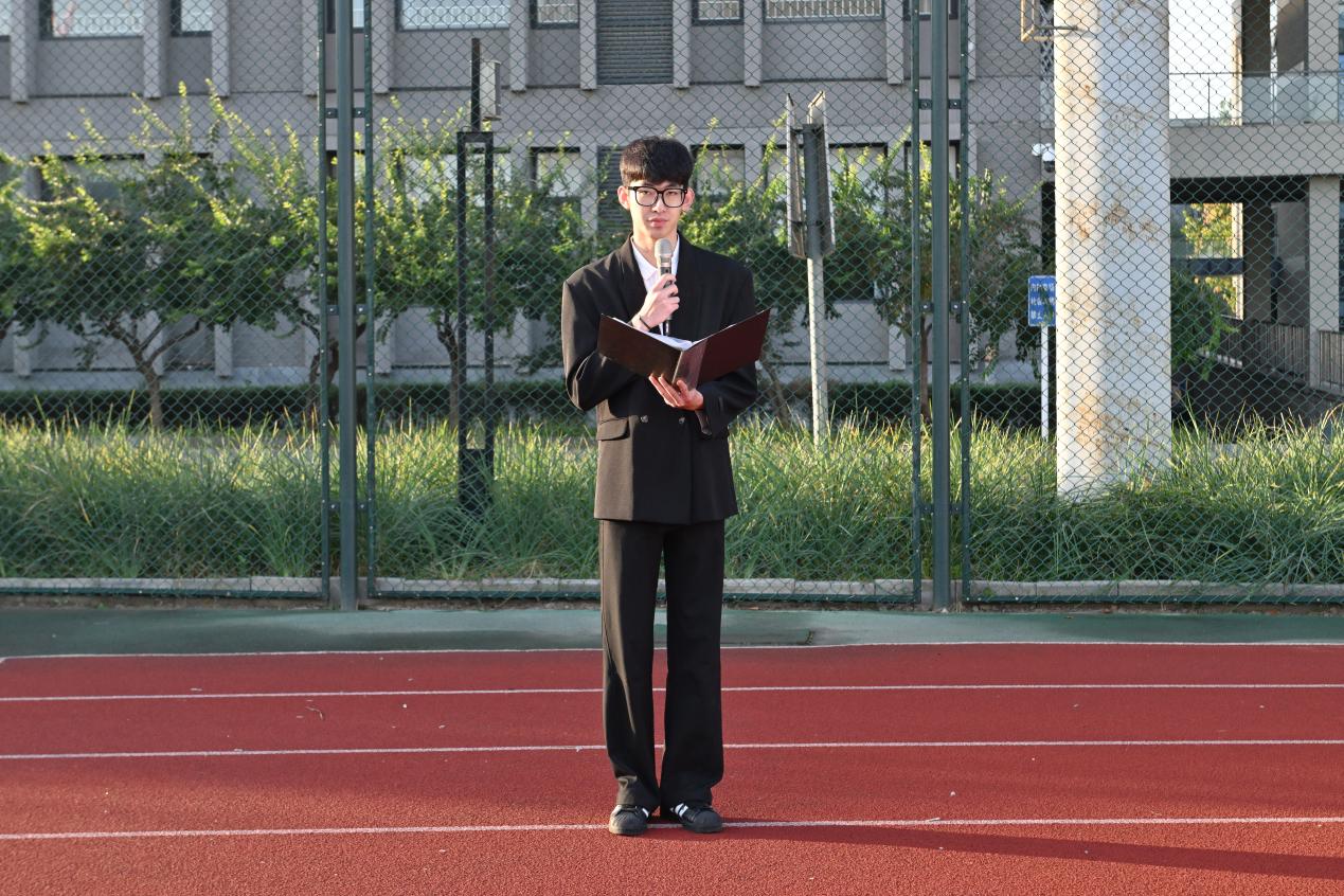 纪念中国人民抗日战争暨世界反法西斯战争胜利80周年大会广场合唱团成员,机电学院机电222班李子涵同学在国旗下发言。他结合参加国家级纪念活动的亲身经历,深情回顾了祖辈参加抗战的光荣历史,表示:“作为抗战老兵的后代,我深感使命在肩。我们要继承先辈遗志,将个人理想融入国家发展大局,用专业知识服务社会主义现代化建设,让抗战精神在新时代绽放光芒。”