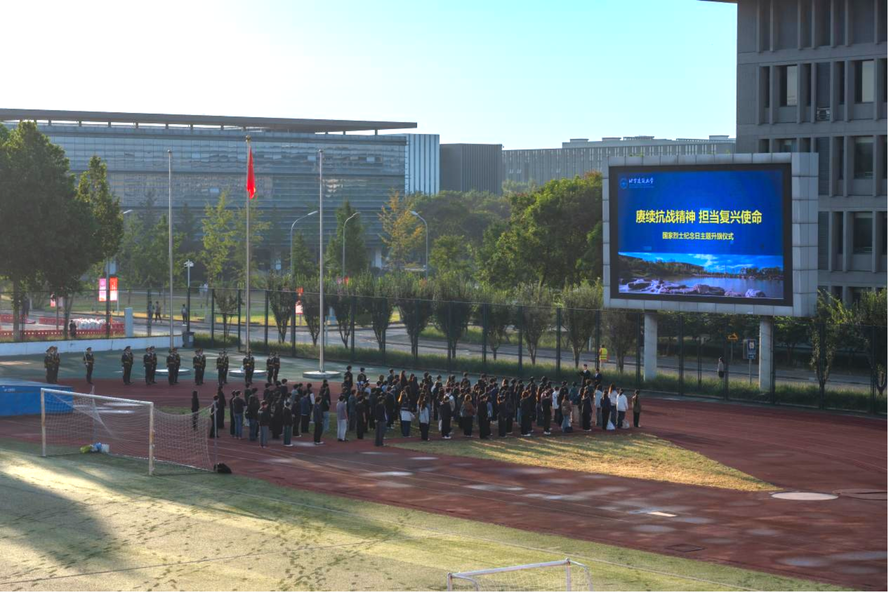9月30日清晨,在第十二个烈士纪念日到来之际,北京建筑大学于大兴校区举行“赓续抗战精神 担当复兴使命”主题升旗仪式。200余名师生代表参加活动。在庄严的仪式中,师生共同缅怀革命先烈,传承红色基因,凝聚奋进力量。