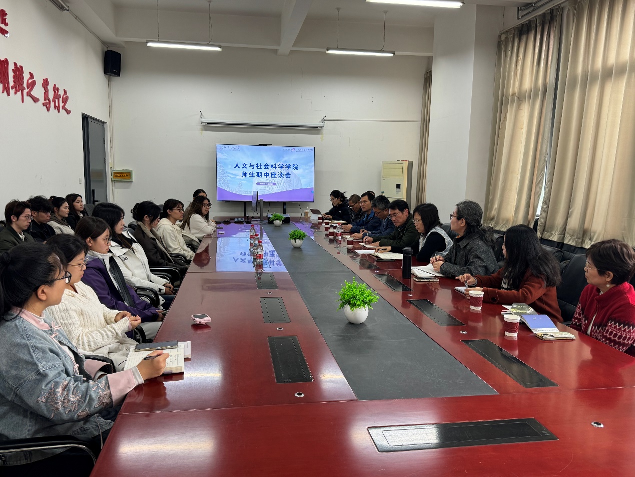 为深入了解本学期开学以来的教学运行情况,倾听学生心声,回应学生关切,营造积极向上的学风教风,人文社会与科学学院于10月28日在基d317召开2025-2026学年秋季学期期中师生座谈会。参会人员有教务处处长许鹰、教务处综合科科长谢烈虎、校督导马克思主义学院教授汪琼枝、学工部心理素质教育中心副主任张琬奇、学工部就业管理科科长王国亭、人文社科学院教学院长侯平英、副书记曹洪涛、代表教师石磊、马龙君、辛海平、刘颖、辅导员陈晨、王一茜、教务员王彤以及本科各班级代表,会议由侯平英主持。