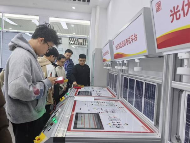 在培训基地,企业工程师为师生们系统讲授并演示了变电站设备认知、变电倒闸操作、风电安全链回路认知及故障处理等关键技能,深入讲解了光伏电站的系统构成、常见故障处理策略及太阳能电池板的检测方法。通过面对面的技术讲解与动手操作,同学们对大型风电场和光伏电站的运行、维护与安全管理建立了更为系统、直观的认识,有效实现了理论知识与工程实践的深度融合。