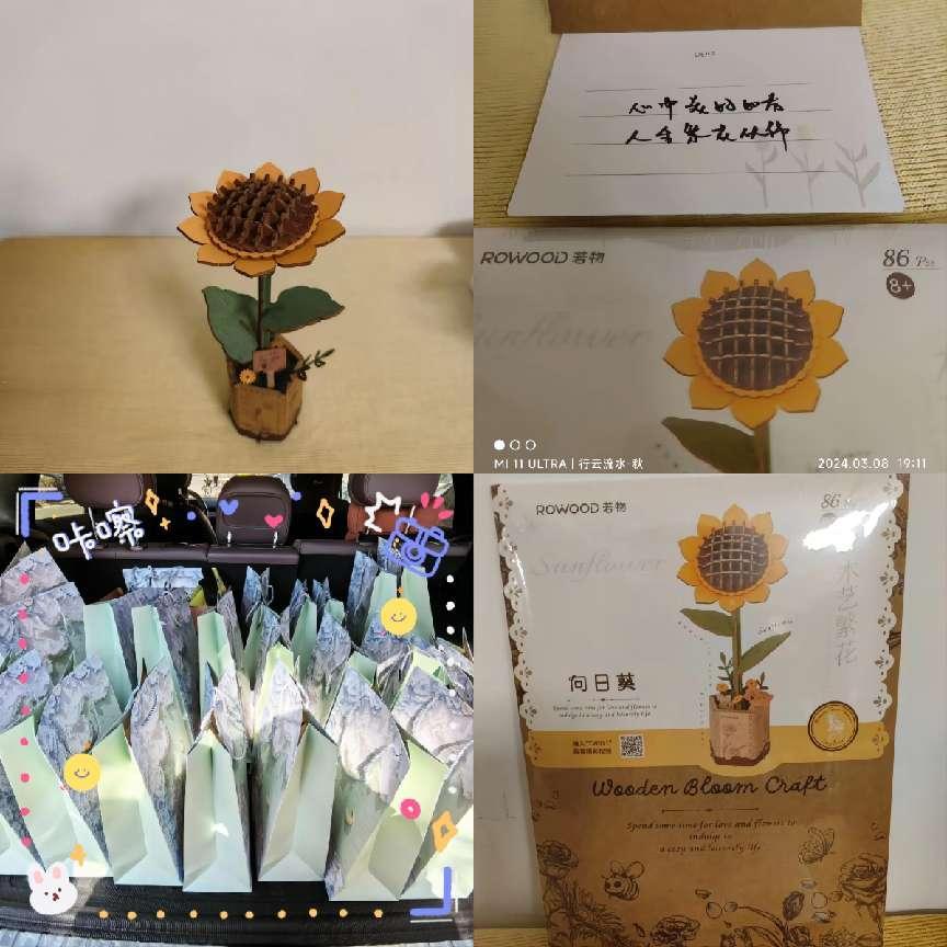 14、后勤系统分工会为全体女性教职工赠送了木艺繁花盲盒,祝愿大家“心中美好如春,人生繁花似锦”