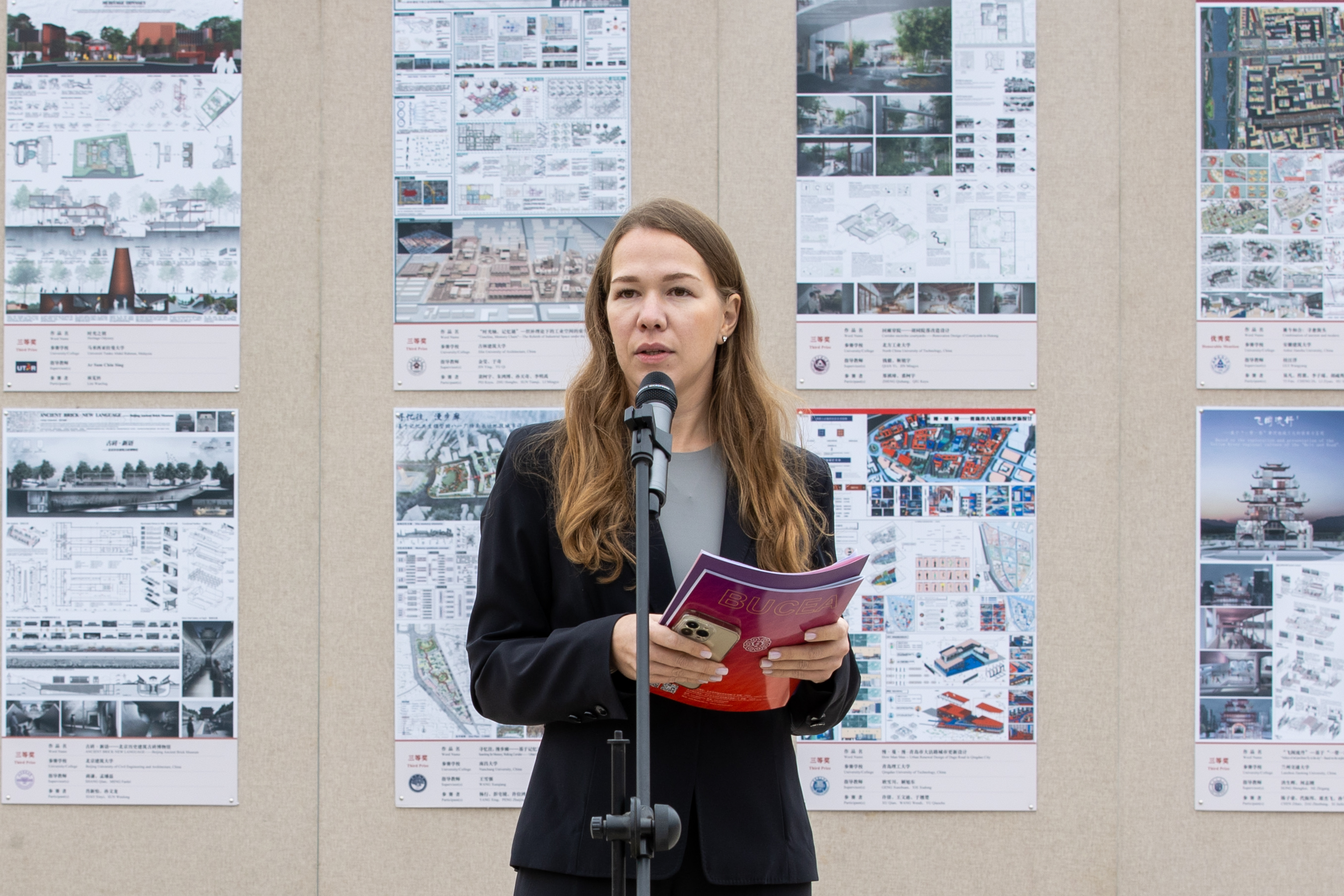 哈萨克斯坦建筑与土木工程学院校长伊曼多索娃、撒马尔罕国立建筑与土木工程大学校长吉德姆、莫斯塔尔大学校长托米奇、亚的斯亚贝巴科技大学副校长沃尔德米查尔、拉曼大学副校长倪慕敏,与北京建筑大学党委书记郑宇以及校长张大玉等共同开启本次竞赛作品展。