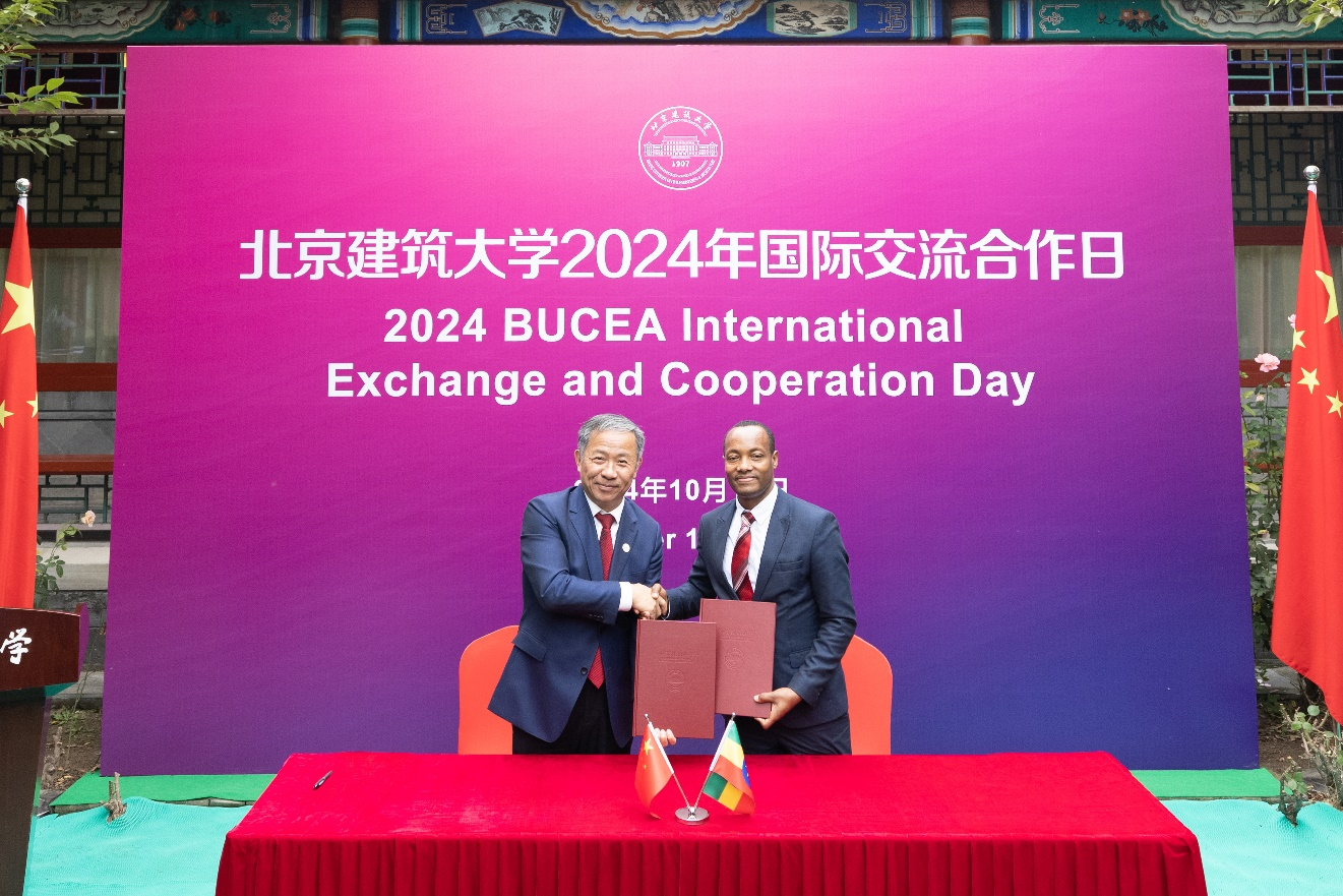北京建筑大学校长张大玉代表学校与哈萨克斯坦建筑土木工程学院签署合作谅解备忘录,与乌兹别克斯坦撒马尔罕国立建筑与土木工程大学签署合作谅解备忘录,与波黑莫斯塔尔大学签署国际科研合作项目协议,与埃塞俄比亚亚的斯亚贝巴科技大学签署国际学生定向培养合作协议,与马来西亚拉曼大学、波黑巴尼亚卢卡大学签署学生交换协议,并为塞尔维亚诺维萨德大学师生交流团授旗。