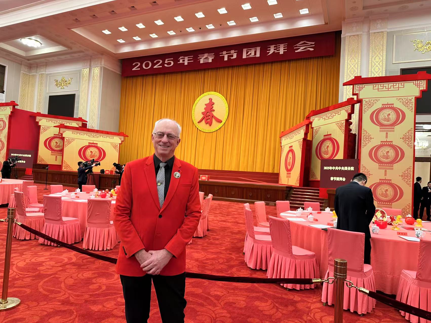 中共中央、国务院1月27日上午在人民大会堂举行2025年春节团拜会。中共中央总书记、国家主席、中央军委主席习近平发表讲话,代表党中央和国务院,向全国各族人民,向香港特别行政区同胞、澳门特别行政区同胞、台湾同胞和海外侨胞拜年。李强主持团拜会,赵乐际、王沪宁、蔡奇、丁薛祥、李希、韩正等出席。北京建筑大学荷兰籍专家、特聘教授马克·梵·洛斯德莱特(mark van loosdrecht)院士作为中国政府友谊奖获得者代表受邀参加团拜会。