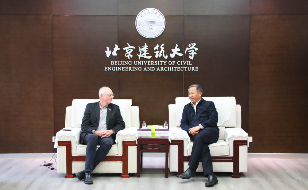 团拜会前,1月25日,中国政府友谊奖颁奖仪式在北京隆重举行,人力资源社会保障部部长王晓萍向马克·梵·洛斯德莱特院士颁发中国政府友谊奖奖章。这是北京建筑大学首次荣获此奖项,校长张大玉受邀参加颁奖仪式。