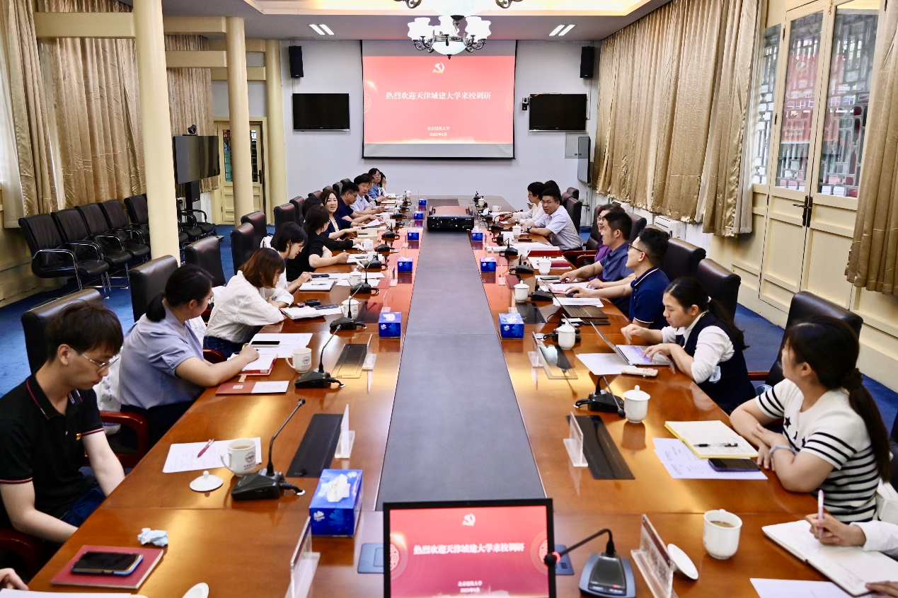 座谈会前,天津城建大学一行观赏校园风光,并参观学校服务首都规划建设成果展、老北京旧城模型展、校史馆和党建实训基地。