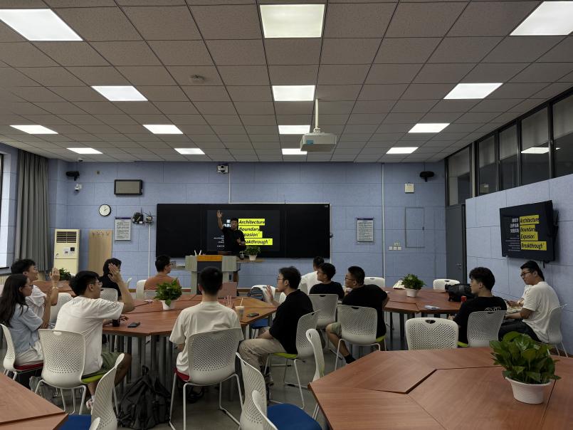 开营第一讲由徐跃家副教授授课,他以“学科交叉”为核心展开前沿探索。在“建筑学 工业工程”领域,深度解析工厂灭火机器人”项目与工业4.0体系的融合逻辑;在“建筑学 科技消费”方向,分享了“智能宠物项圈”的跨界实践;围绕课程核心“生产性连贯式景观系统”,徐跃家提出:需以3d打印模块化技术为支撑,打破学科壁垒,实现空间功能与产业价值的有机衔接,通过技术赋能构建可迭代、可增值的动态系统,为建筑学转型提供实践路径。