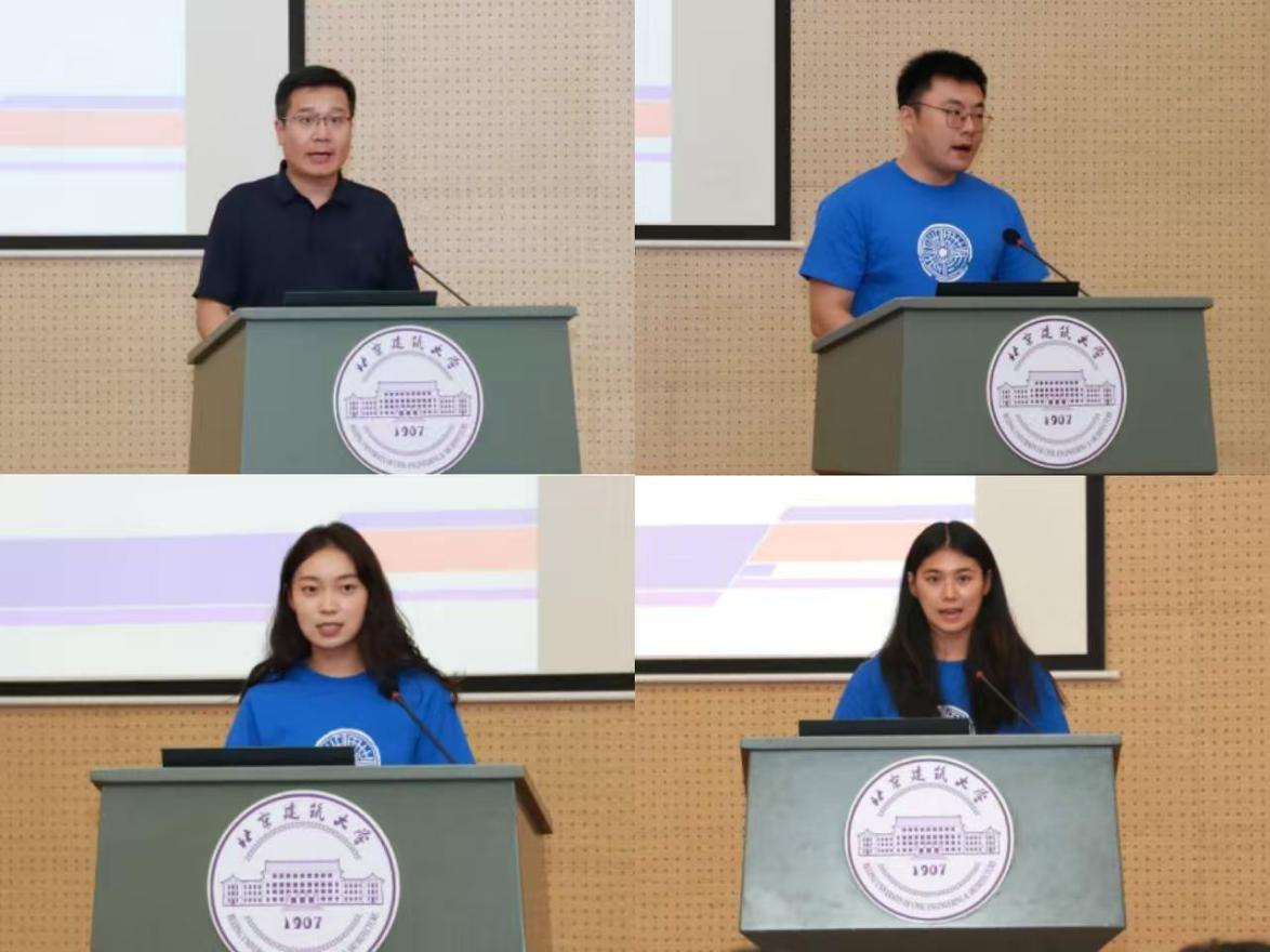 博士生导师代表马超教授发言,他谈到研究生阶段是从知识接受者向探索者和创造者的关键转变,愿各位在科研道路上坚定初心、锤炼真知,最终学有所成。21级博士生代表刘兴奇,25 级博士新生(2 3 硕博连读)代表吴梦琳和25 级硕士新生代表高洋洋先后发言:刘兴奇结合自身科研经历,寄语学弟学妹勇于探索;吴梦琳与高洋洋则表达了对研究生生涯的期待与奋斗决心,其中高洋洋以 “博学而有智慧” 为目标,引用导师诗作《路》,彰显了新一代土木人的初心与担当。
