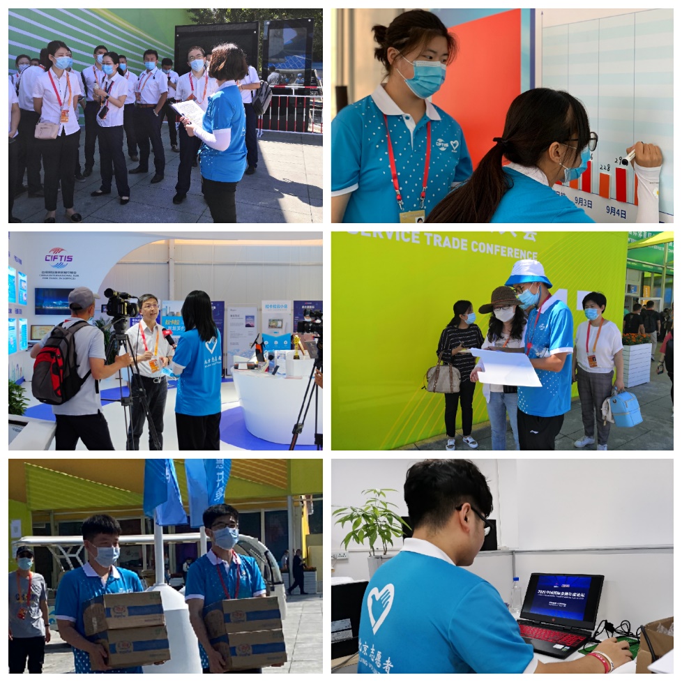 我校志愿者们经过严格选拔、认真培训、实地踏勘与充分动员后,在服务期首日迅速投入服贸会国会金融展专区和南区志愿者之家岗位工作。在国会金融展专区,志愿者们分组协同,其中,论坛筹备组志愿者们认真校核展示文件;企业对接组志愿者们为一批批参观人员提供细致、全面的讲解;引导机动组志愿者们协助工作人员处理展区突发问题,保证展会的顺利进行。在南区志愿者之家里,我校志愿者们紧密配合,统计服贸会南区各展示区全部志愿服务数据、记录志愿者们的服务过程、运送饮用水等保障物资,全力打造服贸会志愿者们的温暖大后方。