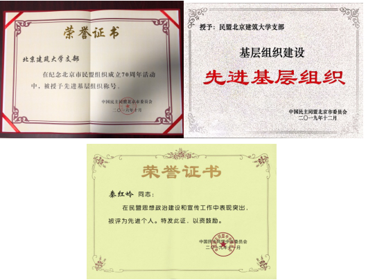 “十三五”期间,民盟支部两次获得“民盟北京市委先进基层组织”称号,3名民主党派成员被评为民主党派中央“先进个人”,15人次获得民主党派市级优秀个人称号。