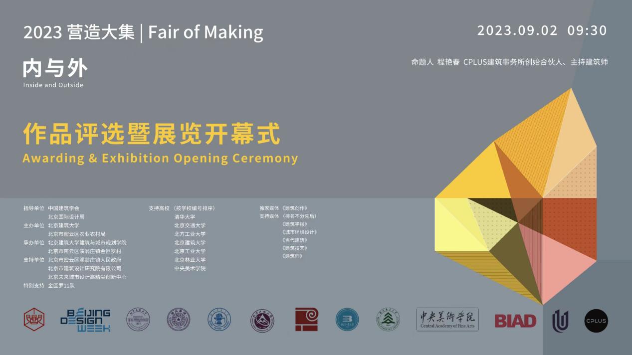 2023年9月2日,北京建筑大学和密云区农业农村局共同主办的“2023营造大集”作品评选暨展览开幕式在密云区溪翁庄镇金叵罗村农场举行。作为中国建筑学会“科普专项支持项目”和北京国际设计周“设计之旅”项目开幕活动,大集召集在京7所院校组成8支参赛队伍,围绕“内与外”主题,经过一个半月的紧张设计、5天的在地建造,共完成6件设计作品。这些作品将全部参与当日评选和后期展览活动。
