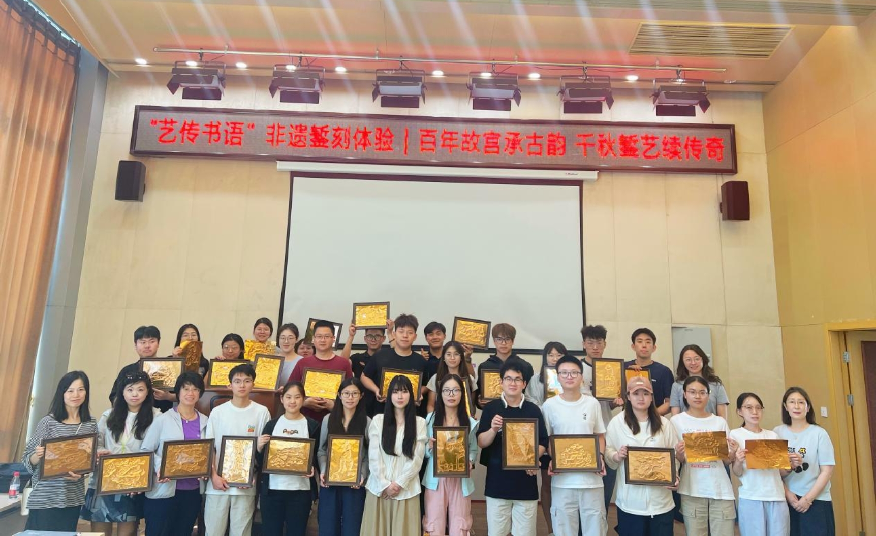 6月14日是2025年“文化和自然遗产日”。为推动中华非遗文化走进校园,焕发时代光彩,我校图书馆联合校工会,以故宫文化为媒,开启了传承文脉、展现非遗之美的体验活动。6月17日,我校30多位师生齐聚图书馆,共同参与“百年故宫承古韵 千秋錾艺续传奇”非遗錾刻体验活动,沉浸式感受传统錾刻技艺的独特魅力,领略非物质文化遗产的深厚底蕴。