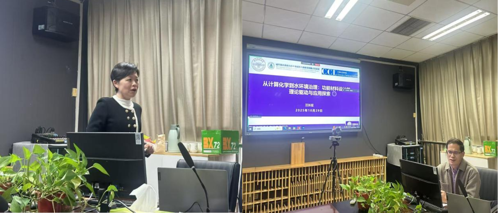 在师生交流环节,与会师生就污染物扩散建模、机器学习预测精度、脉冲系统控制策略、材料设计理论验证等问题展开了深入讨论。