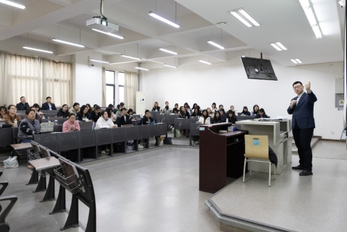 座谈会前,北京市学校思政工作中心一行走进课堂,实地聆听马院思政课专业教师授课。