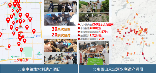 团队十余年系统调研北京水文化遗产,涵盖中轴线及西山永定河水文化。结合“世界水日”等主题日,组织大中小学开展科普讲座、走河等活动,推进水文化宣传。团队获麒麟科学技术奖、“挑战杯”二等奖等多项荣誉,“北京中轴线水文化遗产调研”项目入选全国大学生创新创业年会。活动获北京电视台等媒体报道。过去一年,开展西山永定河水利遗产调研,行程4000公里,整理文献30万字,调研260处遗产点,形成台账、图册等系列成果。