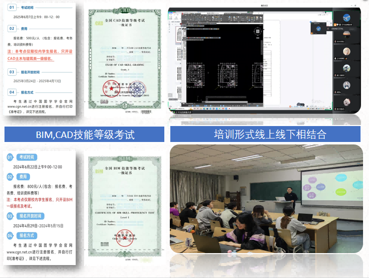 社团定期组织“高教杯”校内选拔培训,举办“图研讲堂”邀专家分享图学技术,开展知识竞赛、三维建模赛等活动。作为图学教育实践平台,社团构建课内外联动的学习共同体,通过系统化培训与实践,培养学生工程图学素养、数字化设计能力和创新思维。历年来,成员在国家级、省部级图学竞赛中屡获佳绩,助力学校培育专业扎实的建筑人才。