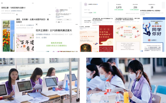 本科招生全媒体中心致力于服务学校招生工作,运用新媒体技术宣传学校,培养成员文案、设计、视频及运维能力,全方位展示建大风采。