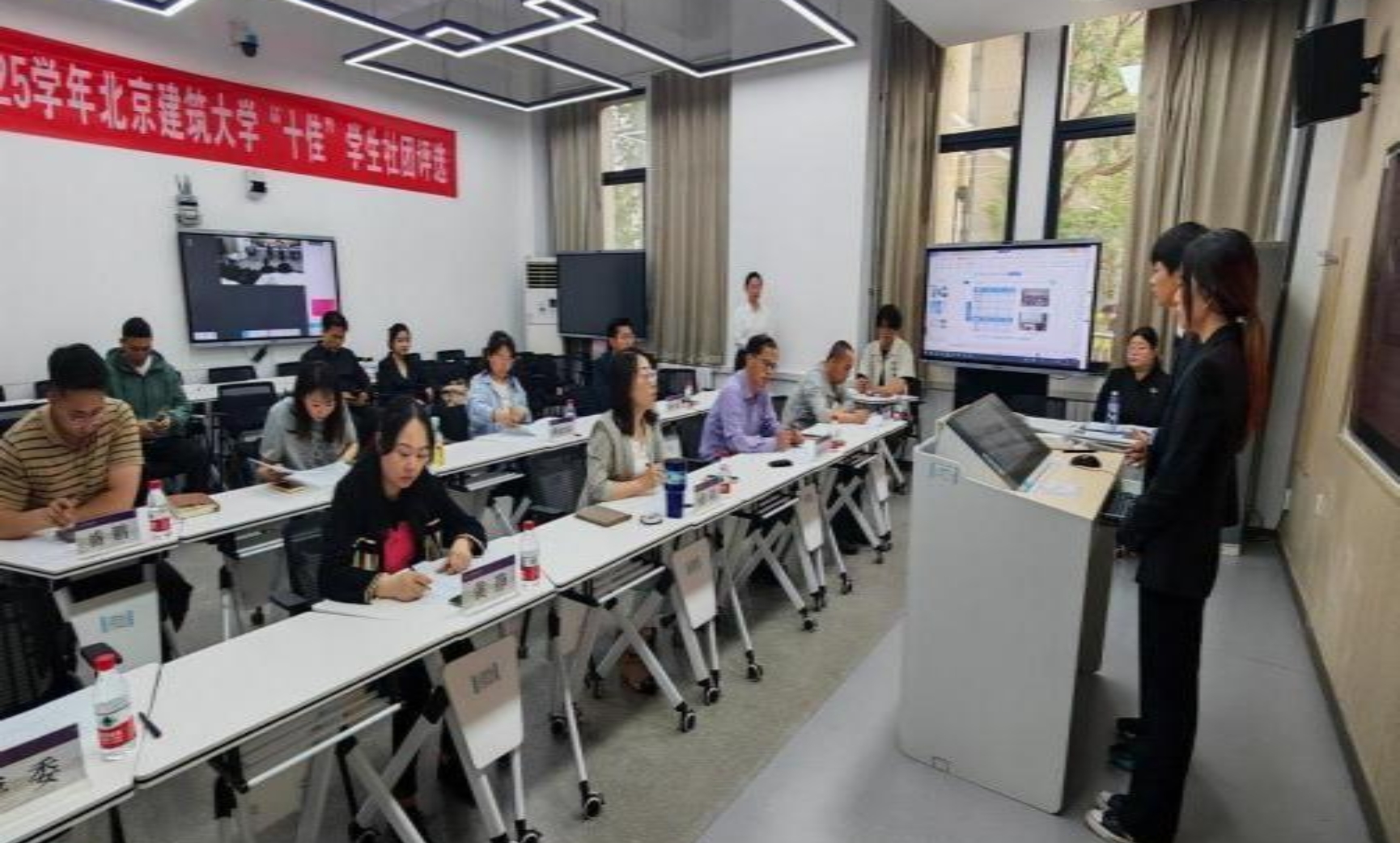 经过社团自荐、指导教师审核、业务指导部门与校团委综合评议,共26个学生社团入围答辩评比环节,评比现场学生社团立足自身特色,通过视频展播、数据汇报、实物展示等形式,生动诠释了学生社团育人实效与文化内涵。其中,思想引领类社团结合社团引领青年学子、发挥育人功效的定位,引导学生深入思考社会、政治和文化议题,展示了一学年来服务学校立德树人根本任务中发挥的作用;志愿公益类社团通过回顾本学年的志愿服务工作,展示其服务社会、帮助他人的成果,为营造和谐社会贡献力量;学术科技类社团全面介绍了在参加科技竞赛中取得的成绩和收获;自律互助类社团则深入学生群体,为学生提供情感支持并帮助同学们解决学习生活上的难题;文化体育类社团踊跃展示了它们通过开展各种形式的文体活动,培养学生艺术修养和体育精神,营造积极向上的校园文化氛围。参与答辩的学生社团围绕社团组织建设、日常活动和培训、品牌活动等方面,展现了我校青年学生的新时代风采。