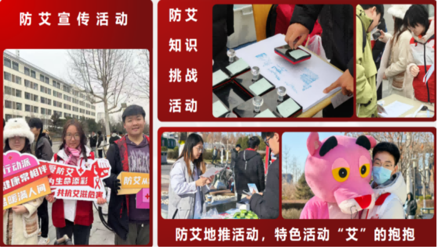 在2024-2025学年,社团以提升师生防艾认知为目标,举办知识竞赛、“艾”的抱抱等宣传活动,创新开展“微笑盲盒”“防艾大富翁”等特色项目。社团连续多年在中华红丝带基金校园情景剧比赛中获奖,为学校赢得“红丝带感动校园”称号,并参与京津冀防艾辩论赛、大兴区防艾科普大赛等。10余名成员加入大兴区防艾服务队,累计服务超3000人、7000小时,以实际行动助力营造和谐校园环境。