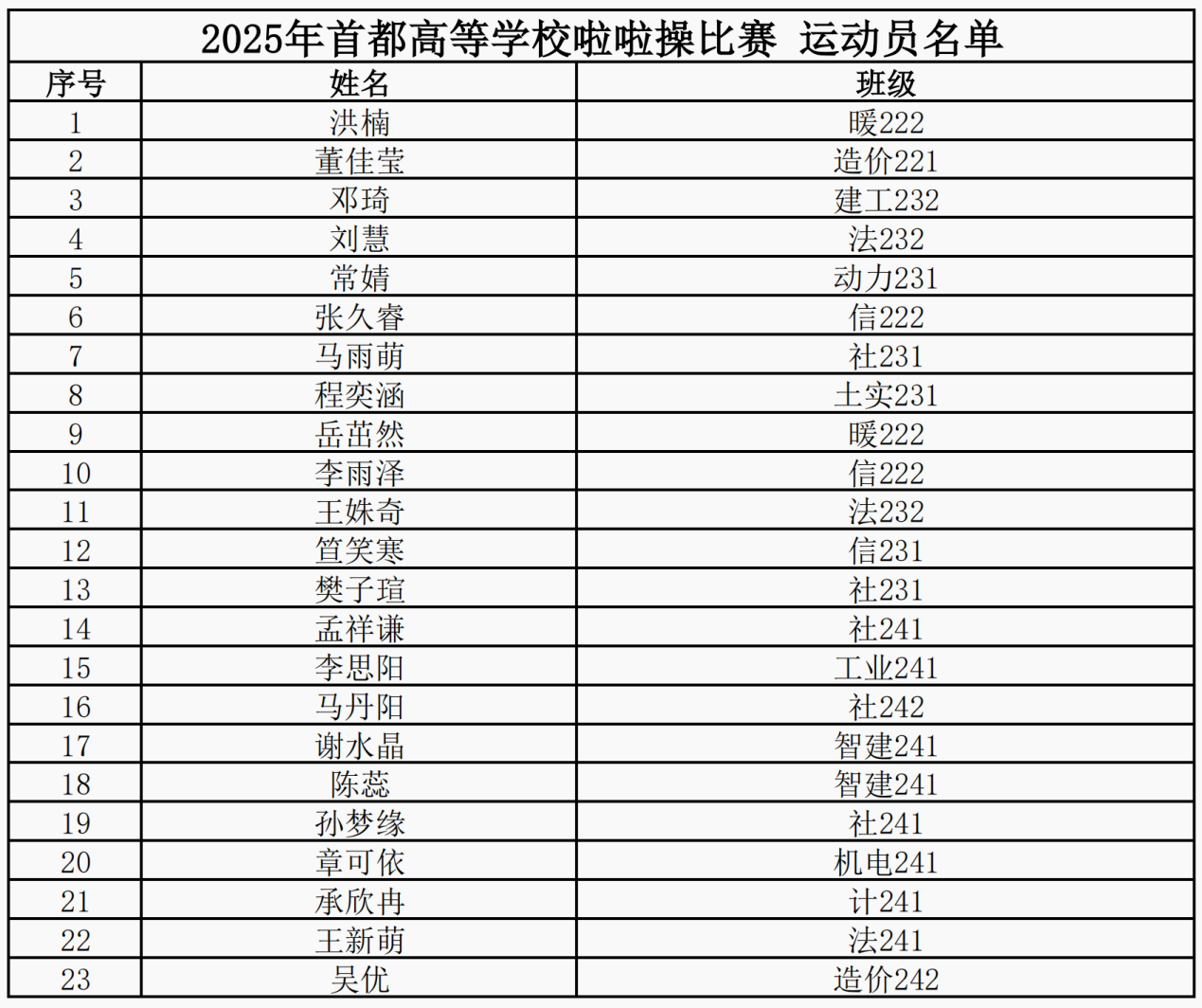 2025年首都高等学校第九届健身舞蹈比赛运动员名单
