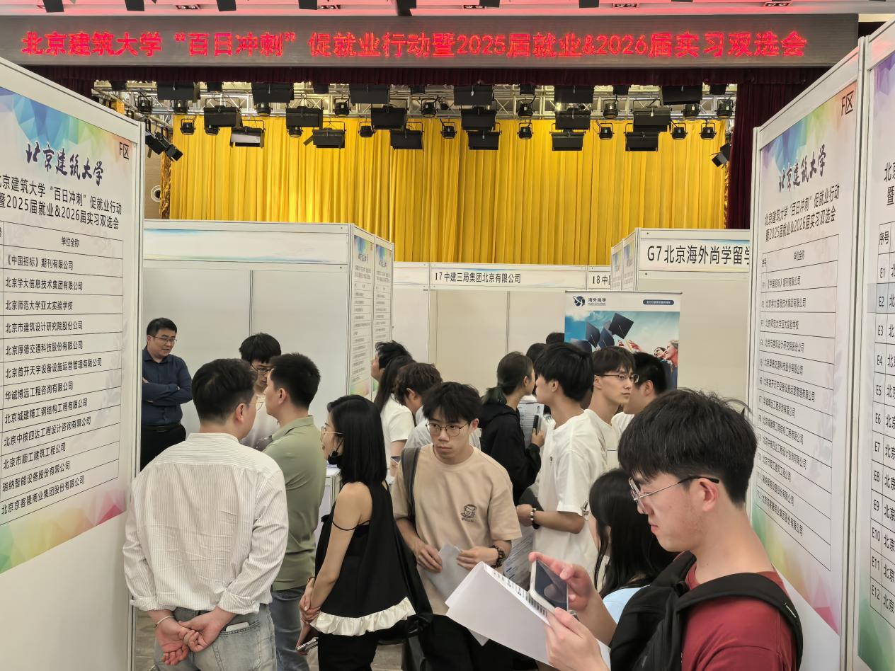 奋斗扬帆,筑建未来。北京建筑大学将继续紧扣新时代住建行业发展需求,加强校企合作,深化职业教育与实践教学融合,进一步落实“百日冲刺”促就业行动,为毕业生搭建更加宽广的就业平台。未来,学校将深入完善就业工作机制,继续举办多场特色化招聘活动,拓宽毕业生就业渠道,为毕业生就业提供多重选择、为实现个人理想创造更多机遇,全力促进毕业生顺利就业、尽早就业,为经济社会高质量发展提供强大的人力资源支撑。