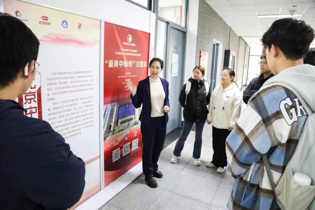 近日,北京市档案馆“最美中轴线”主题展在我校大兴校区基a一层西侧走廊布展展出。该活动是2025年“‘京’彩文化 青春绽放”行动计划“红色行”之流动的爱国主义教育课堂——北京爱国主义教育基地精品展览进校园项目系列活动之一,由市委宣传部、市委教育工委联合主办,北京广播电视台北京时间承办。