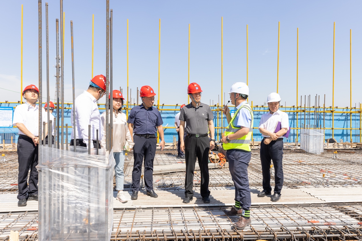 学校领导一行深入施工现场,先后前往校企合作智能建造展示区、钢筋加工区、施工作业面以及临建生活区等关键点位,全面细致地调研了项目中新技术应用、工程进度、质量管控以及安全生产等多方面管理情况。考察过程中,校领导重点了解了智慧工地决策系统中aigc技术与大数据处理的前沿技术运用、作业区地下室全面封顶完成情况和地上结构施工后续组织安排、质量管控体系,以及入汛入暑后施工安全保障措施的落实情况。
