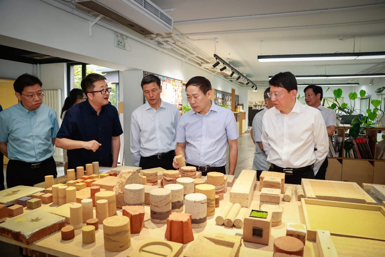 座谈会前,徐南平副部长一行参观学校科技创新成果展和穆钧教授主持的生土建筑工作室。
