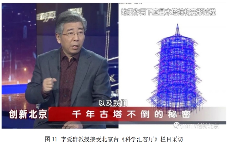 经多年努力,北京建筑大学形成了建筑遗产保护完整的学科布局和人才培养链条,已成为北京建筑遗产保护领域的“主力军”和国家建筑遗产保护领域的“王牌军”。土木学院在国家自然科学基金重点项目等支持下,提出了古建筑木结构“节点-构件-结构”一体化多尺度精细建模方法,开展了典型斗栱、榫卯、叉柱造、倾斜柱、木构架等一系列足尺模型抗震性能和加固试验,在古建筑木结构地震性能评估与保护方面取得了瞩目成果,目前正在围绕世界高度最高、历史最久、规模最大的应县木塔开展大比例模型振动台试验。相关成果获北京市科技进步一等奖、华夏建设科学技术一等奖等重要奖励,得到中央电视台、北京电视台等主流媒体的广泛关注。