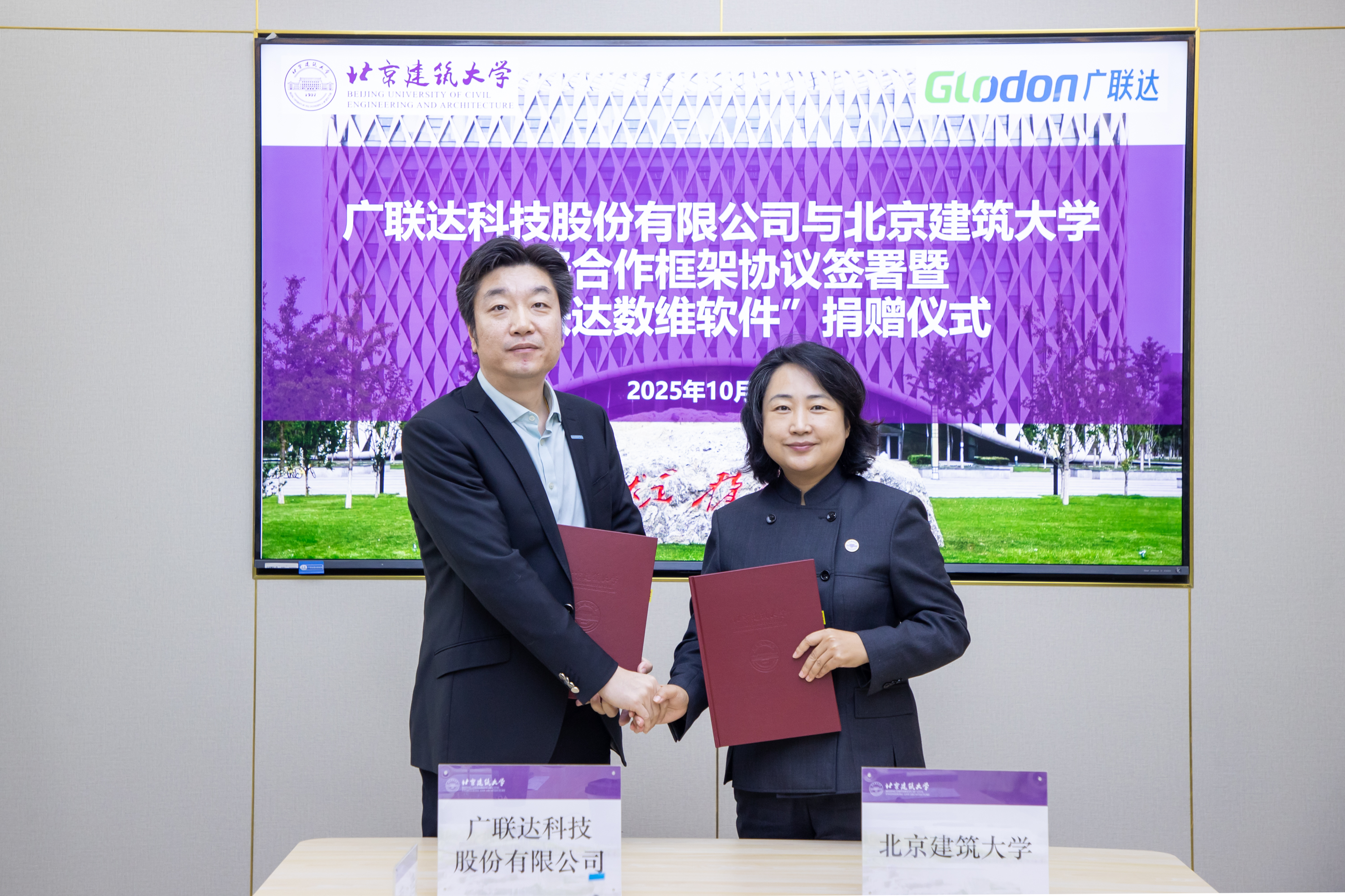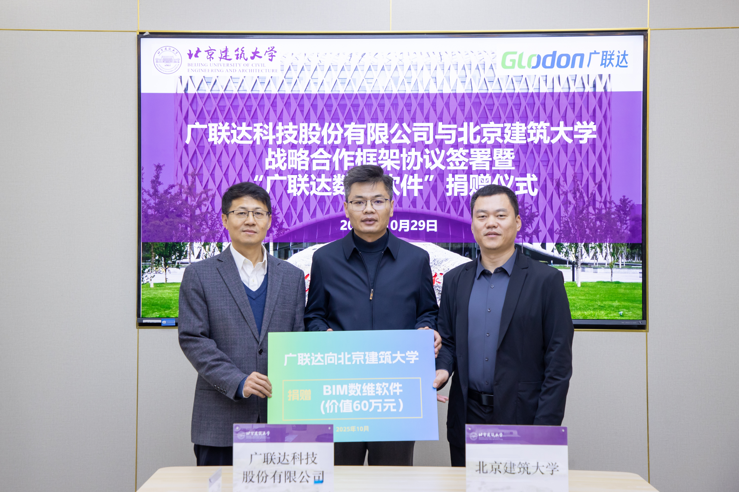 为深入贯彻落实创新驱动发展战略,推动建筑行业转型升级,10 月 29 日,学校与广联达科技股份有限公司战略合作框架协议签署暨“广联达数维软件”捐赠仪式在我校举行,标志着双方战略合作正式迈入全新发展阶段。未来,双方将聚焦国际联盟协作、人才培养体系共建、实践平台创新、产教融合生态协同、行业标准科研互促、国产 bim 软件联合研发六大核心方向,开展全方位、深层次合作,推动产教融合向纵深发展,为建筑行业数字化人才培养与产业创新升级协同注入新动能。北京建筑大学党委常委、副校长陈朝晖,广联达科技股份有限公司副总裁、数字教育事业部总经理钱锋出席仪式。签约仪式由陈朝晖主持。