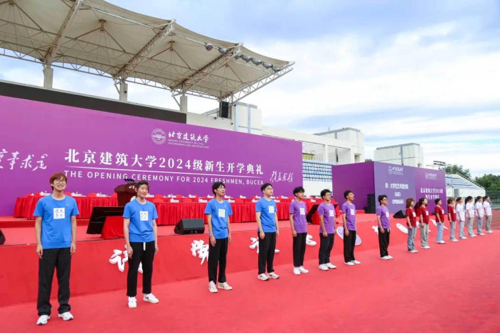 9月5日上午8时,北京建筑大学2024级新生开学典礼在大兴校区西操场隆重举行。校领导郑宇、张大玉、李俊奇、陈红兵、杨建伟、朱静,优秀校友代表、建筑学院1984级校友、首届“国家卓越工程师”称号获得者、中国建筑大师、中建设计研究院有限公司总建筑师薛峰,意大利米兰理工大学教授、学校教育部古建筑安全与节能国际合作联合实验室外方主任玛丽亚·安东尼娅·布罗韦利,学校相关职能部门负责人、各学院党政领导及教师代表、2024级全体新生参加典礼。典礼由党委常委、副校长朱静主持。