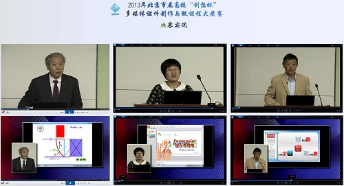 北京市属高校“创想杯”多媒体课件制作与微课大奖赛颁奖典礼在首都师范大学国际文化大厦刚刚落下帷幕,我校环能学院王文海老师获得一等奖,计信部王雅杰老师获得二等奖,经管学院余玲艳和体育部智颖新老师获得三等奖。市教委人事处副处长、师资管理办公室主任李海燕、市教委高教处副处长刘霄、首都师范大学副校长何奕騉、教育技术专家吴疆教授以及北京市高师培训中心主任出席了颁奖典礼,为获奖选手颁发了证书和奖牌。