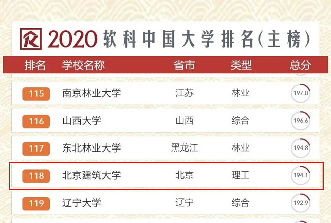 北京建筑大学在2020中国大学排名榜名次大幅度跃升