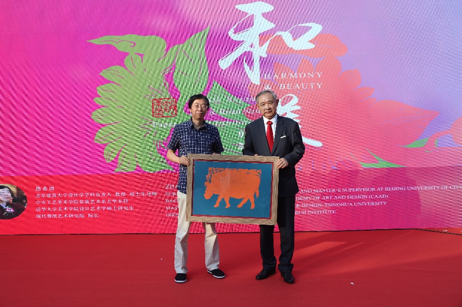 赵希岗教授向北京国际和平文化基金会赠送剪纸作品